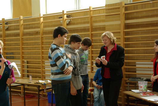 Uczniowie wzięli udział także w licznych konkursach, np. dziewczęta pokazywały, jak zawiązać krawat. Okazało się, że mistrzynią w tym konkursie jest… pani dyrektor Zofia Piechowicz. Chłopcy mieli nie lada problem, aby zapakować prezent dla dziewczyny. Trudności sprawiło opakowanie np. korali i bransoletki. Nie było za to kłopotu z napisaniem listu miłosnego zawierającego wskazane słowa. Agnieszka Czekaj i Dominika Tkaczyk (uczennice klasy III a) poradziły sobie z tym zadaniem znakomicie.