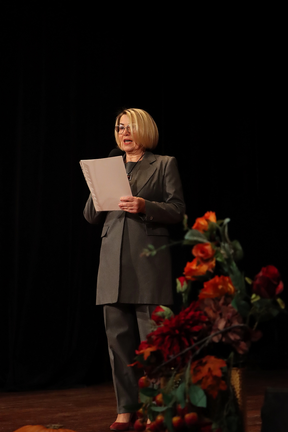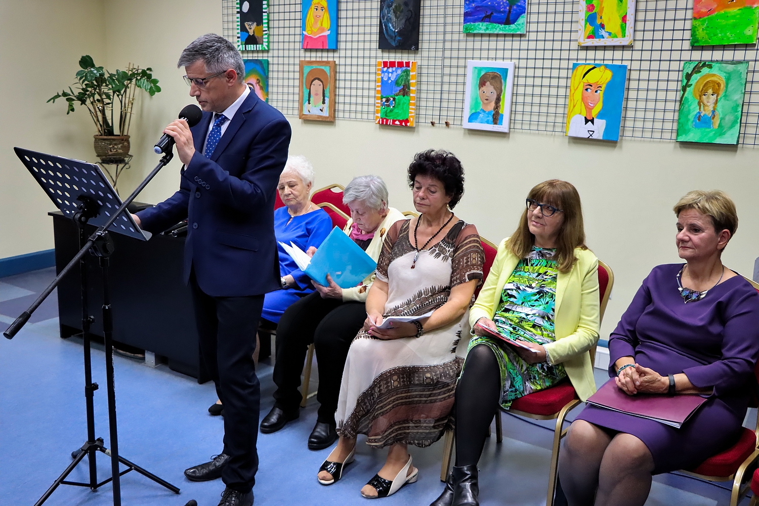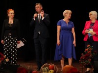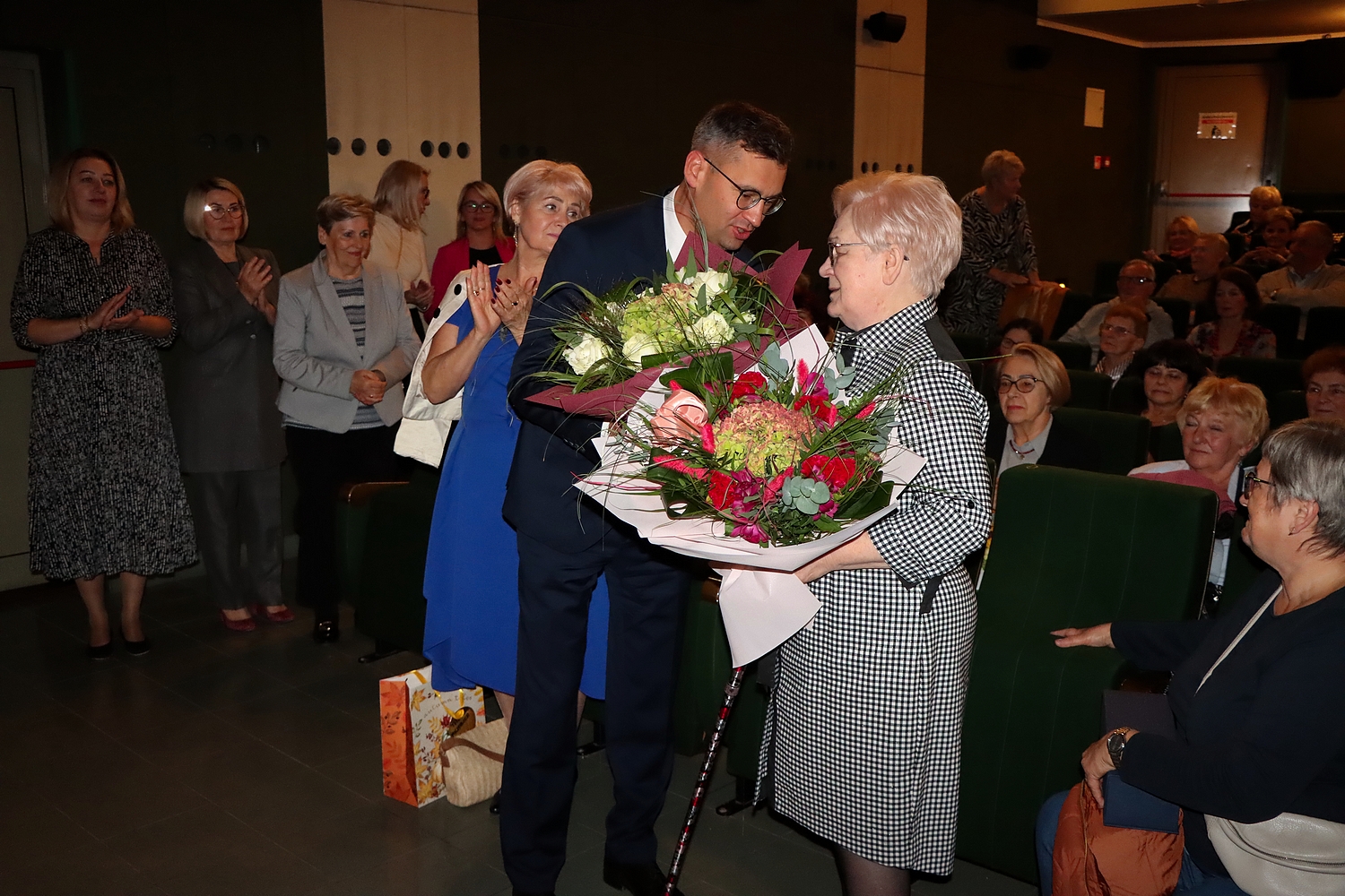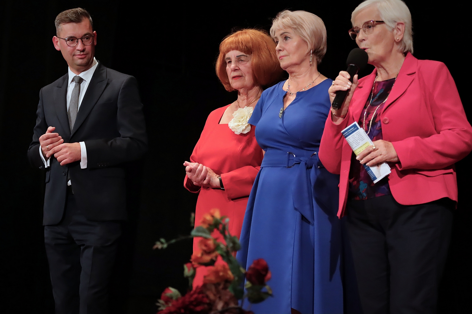 Rozpoczynając Dzień Seniora, Burmistrz Gminy i Miasta Miechów Dariusz Marczewski pogratulował prezentującym się na scenie grupom senioralnym oraz podziękował osobom i instytucjom zaangażowanym w przygotowanie senioralnego święta dedykowanego mieszkańcom naszej gminy. W tym dniu, wręczona została także nagroda imienia Krystyny Barwińskiej, przyznawana przez Radę Seniorów - wyróżnienie to otrzymała Pani Zofia Słota.