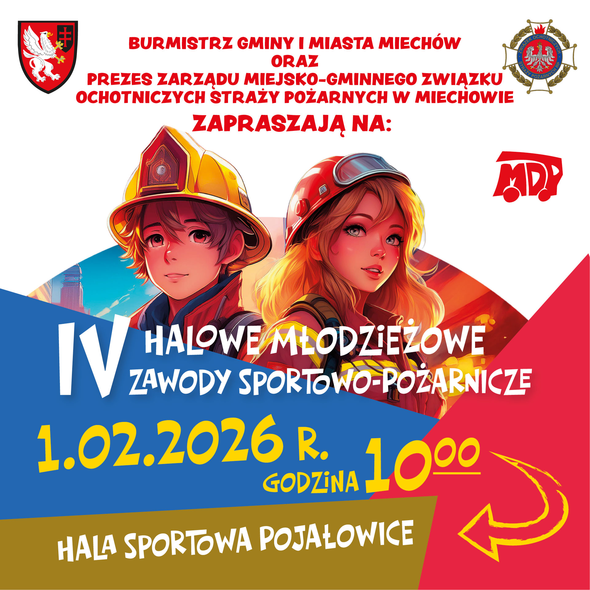 Burmistrz Gminy i Miasta Miechów oraz Prezes Zarządu Miejsko-Gminnego Związku Ochotniczych Straży Pożarnych w Miechowie zapraszają na IV Gminne Halowe Zawody Młodzieżowych Drużyn Pożarniczych.