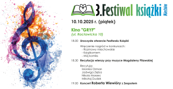 W piątek, 10 października, Kino „Gryf” otworzy swoje drzwi dla uczestników festiwalu. Podczas inauguracji poznamy laureatów konkursów literackich, a wieczór wypełni poetycko-muzyczny występ Magdaleny Pilawskiej wraz z młodzieżą i seniorami. Na zakończenie Robert Wiewióra z Zespołem zaserwuje mieszankę nastroju i energii, a wśród utworów nie zabraknie przebojowego „Krakowskiego Spleenu” - utworu, który artysta stworzył wraz z producentem Tribbsem a w sieci wykonanie to przekroczyło już 30 milionów odsłuchań.