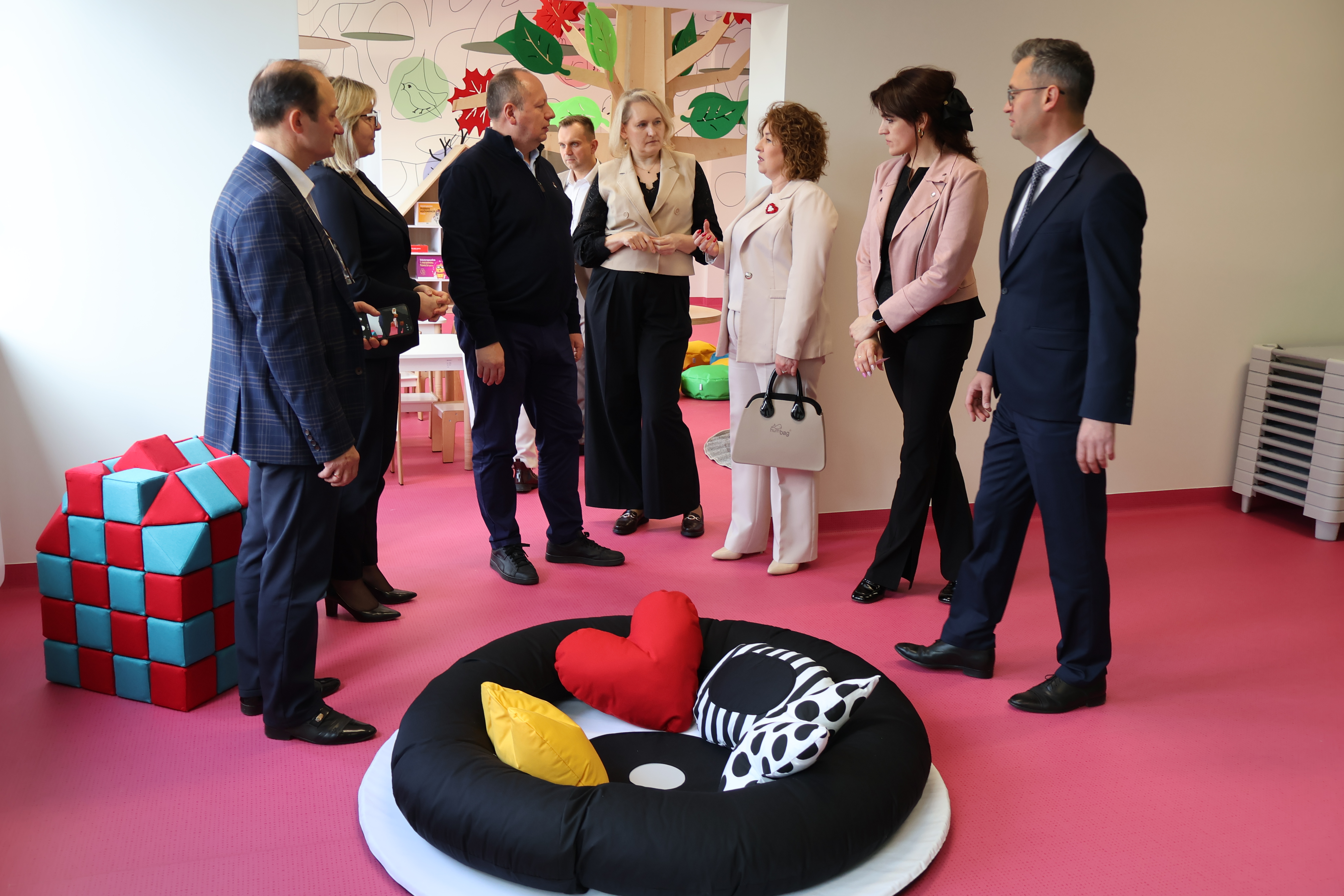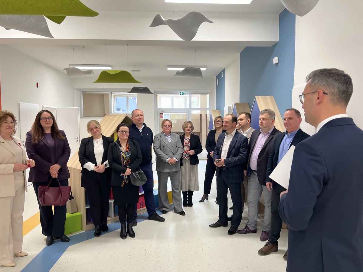 Spotkanie odbyło się na terenie zakończonej inwestycji i było okazją do przedstawienia efektów zrealizowanych prac oraz prezentacji obiektu. Jest on nowoczesny, funkcjonalny, a jednocześnie przytulny i dostosowany do potrzeb maluchów. Jasne, przestronne wnętrza oraz starannie dobrane wyposażenie tworzą bezpieczną przestrzeń do zabawy i codziennej aktywności.