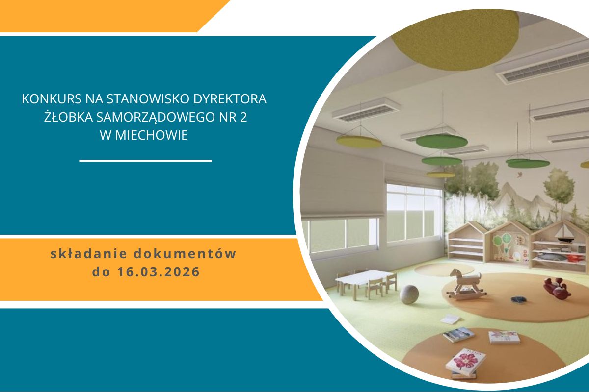 Burmistrz Gminy i Miasta Miechów ogłasza konkurs na stanowisko Dyrektora Żłobka Samorządowego Nr 2 w Miechowie, os. Gen. Władysława Sikorskiego 15 B, 32-200 Miechów.