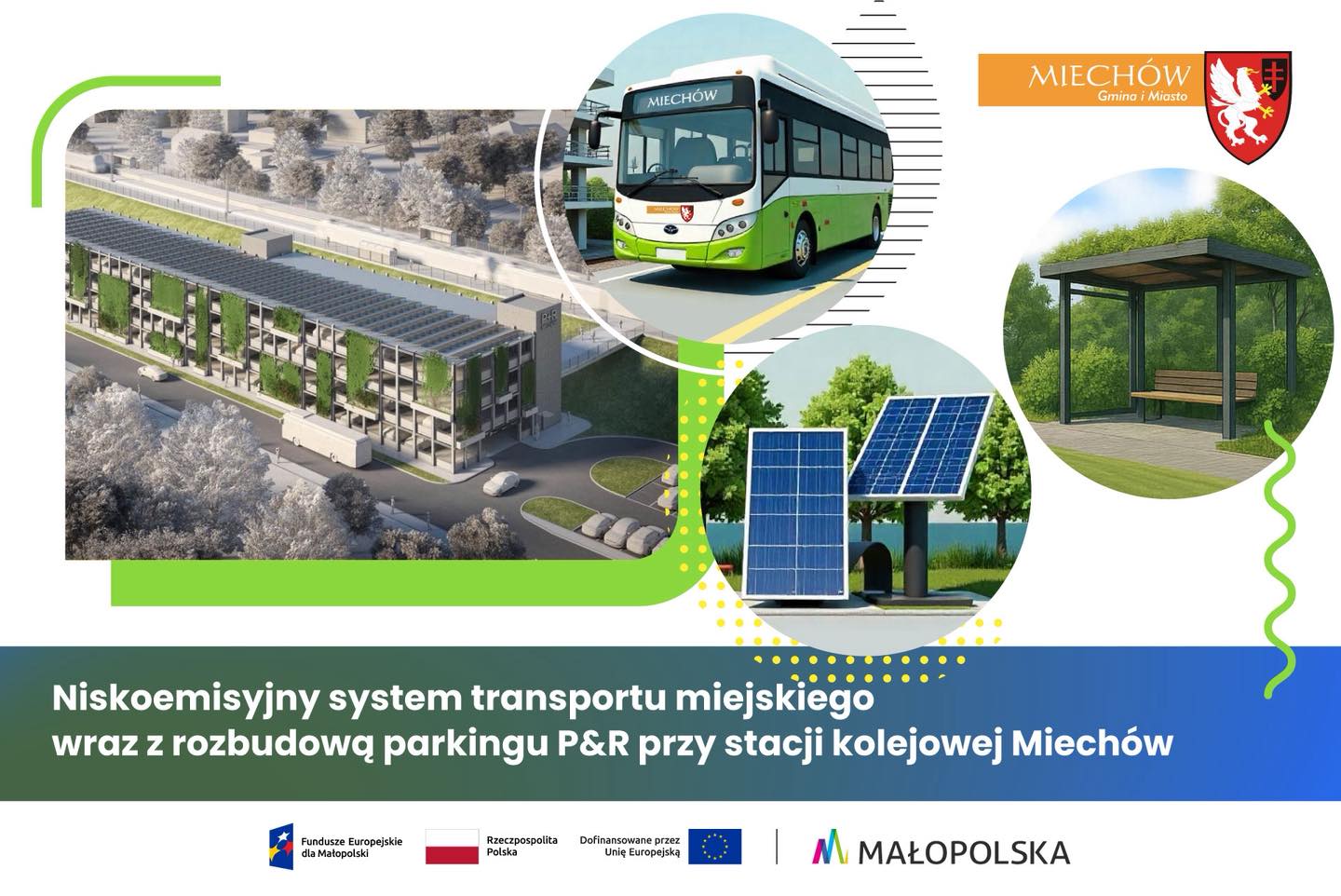 Projekt zakłada również budowę zaplecza garażowo-warsztatowego dla autobusów i wiat przystankowych na trasach ich kursowania oraz budowę instalacji PV na konstrukcji carport z magazynem energii i systemem zarządzania, w celu ładowania autobusów, których baza znajdować się będzie przy Zakładzie Wodociągów i Kanalizacji w Miechowie.