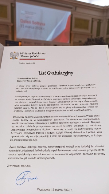 Pan Marek Król pełni funkcję sołtysa nieprzerwanie od 43 lat, aktywnie działając na rzecz mieszkańców oraz rozwoju swojej miejscowości. Serdecznie dziękujemy Panu Sołtysowi za wieloletnią, pełną zaangażowania pracę na rzecz naszej gminy. Składamy również serdeczne gratulacje z okazji otrzymanego odznaczenia. Życzymy dalszych sukcesów, satysfakcji z podejmowanych działań oraz wszelkiej pomyślności.